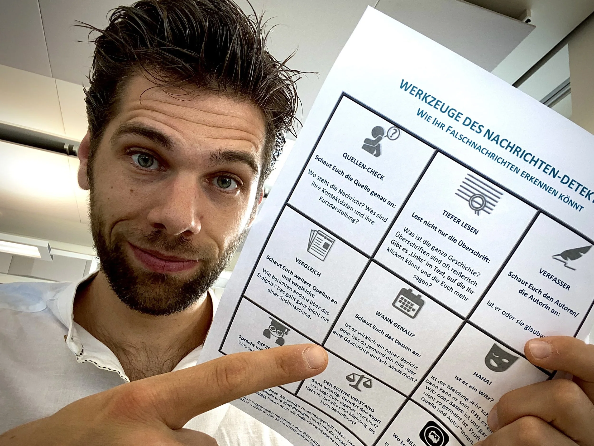 Lie Detectors trains selected professional journalists, media experts and newsrooms to impart basic journalistic tools to students aged 10-15 and to teachers with an award-winning training concept.